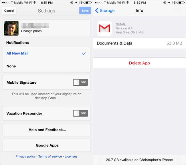 Apple не предоставила никаких опций для управления объемом памяти, который использует приложение Mail. Однако вы всегда можете использовать другое почтовое приложение. Например, если вы используете Gmail, установите Google Приложение Gmail из App Store. Если вы используете Microsoft Outlook.com или Yahoo! Mail, например, затем загрузите Outlook или Yahoo приложения для iOS. Эти приложения обычно не пытаются кэшировать много писем в офлайн-режиме, поэтому они занимают гораздо меньше места для хранения. Фактически, после того, как приложение Gmail использовалось в течение нескольких месяцев, на моем iPhone кэшировалось только 53,4 МБ «Документов и данных».