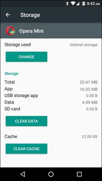 Прокрутите список приложений и коснитесь приложения, которое хотите переместить на SD-карту. Как показано на изображении ниже, Opera Mini не занимает много места во внутренней памяти, но мы собираемся использовать ее в качестве примера. Вы можете прокрутить свой собственный список приложений и выбрать перемещение приложения, которое занимает значительный объем места на вашем устройстве.