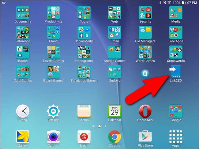 Теперь, когда у вас есть правильно разбитая SD-карта, вставьте ее обратно в устройство Android и загрузите устройство. Искать " Link2SD ”В Play Store и установите его. Есть платная версия приложения, но для этой процедуры хватит и бесплатной. После установки приложения коснитесь значка «Link2SD», который появляется на главном экране, или коснитесь панели «Приложения» и запустите его оттуда.