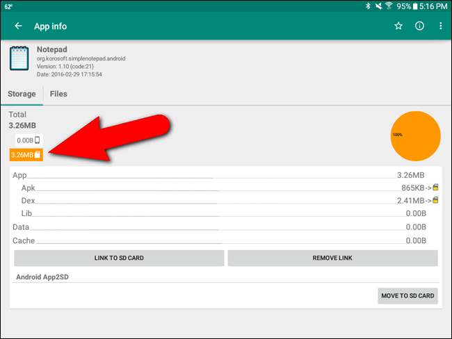 Чтобы проиллюстрировать установку приложения непосредственно на SD-карту, я установил простой Блокнот app из Play Store, и оно было установлено на SD-карту, минуя внутреннюю память, как показано ниже.