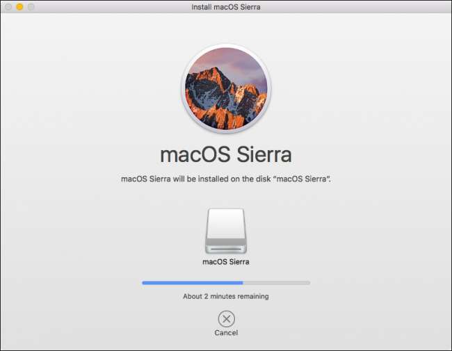 macOS Sierra начнет установку на ваше внешнее устройство. Не стесняйтесь выпить чашку кофе или принять душ, потому что это займет несколько минут.