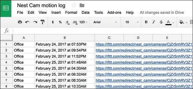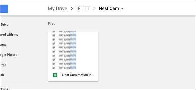 Дайте Nest Cam некоторое время для обнаружения движения, и как только это произойдет, вы должны увидеть, что ваша новая электронная таблица появится на Google Диске в папке «IFTTT».
