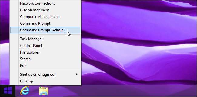 Сначала откройте окно командной строки от имени администратора. В Windows 8.1 или 8 щелкните правой кнопкой мыши в нижнем левом углу экрана или нажмите Windows Key + X и выберите Командная строка (администратор). В Windows 7 откройте меню «Пуск», найдите «Командная строка», щелкните правой кнопкой мыши ярлык командной строки и выберите «Запуск от имени администратора».