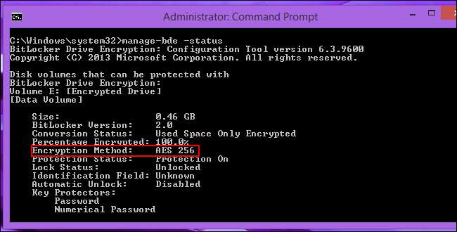 Вам понадобится специальная команда, чтобы узнать, использует ли диск 128-битное шифрование AES или 256-битное шифрование AES.