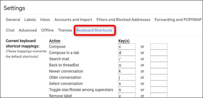 После перезагрузки страницы вернитесь в настройки, где на новой вкладке «Сочетания клавиш» вы увидите и отредактируете все сочетания клавиш, доступные в Gmail.