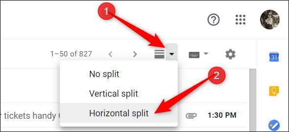 Сохраните изменения, и когда вы вернетесь в свой почтовый ящик, щелкните значок области предварительного просмотра и выберите вертикальное или горизонтальное разделение для просмотра сообщений.