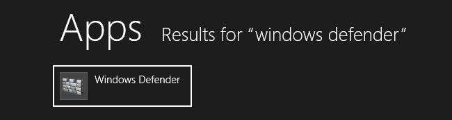 Чтобы включить сканирование съемных носителей, вам необходимо открыть Защитник Windows, что можно легко выполнить, набрав «Защитник Windows» на начальном экране для поиска приложения.