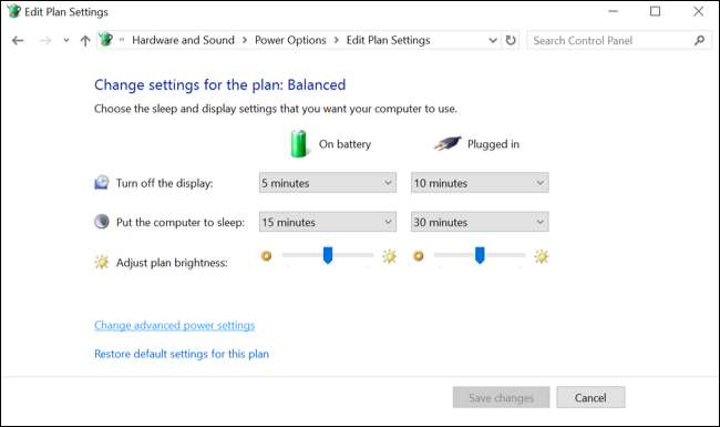(Эти настройки привязаны к вашему плану электропитания. Однако по умолчанию ваш компьютер всегда будет настроен на «Сбалансированная» схема электропитания если вы не выберете другой план питания.)