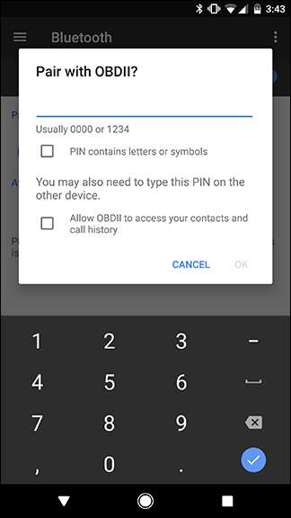 Затем вам будет предложено ввести четырехзначный PIN-код адаптера. Вы можете найти его в инструкциях, прилагаемых к адаптеру, но, как гласит подсказка, обычно это 0000 или 1234. После ввода PIN-кода нажмите OK.