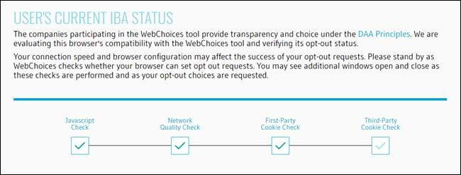 DAA имеет регулирующие принципы, и, хотя компании должны выбирать для участия, те, которые действительно позволяют пользователям отказаться. Очень немногие люди знают, как это сделать, но, к счастью, DAA упрощает это, предлагая инструмент под названием WebChoices который выполняет быстрое сканирование вашего компьютера или мобильных устройств в поисках методов таргетинга 134 различных компаний, чтобы узнать, влияют ли они на ваши машины.