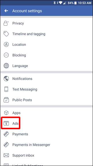На мобильном устройстве - в меню> Настройки> Настройки аккаунта> Реклама.