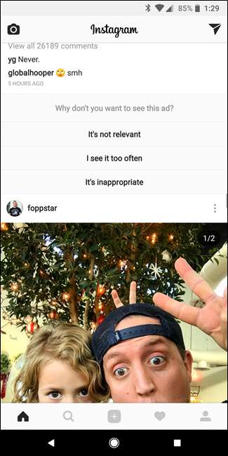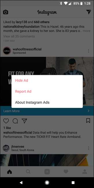 Оттуда вы можете скрыть или заблокировать рекламу. Как только вы его скроете, вместо него появится поле с тремя вопросами, которое позволит вам рассказать Instagram, почему вы скрыли рекламу. Но это все, это все, что у вас есть.