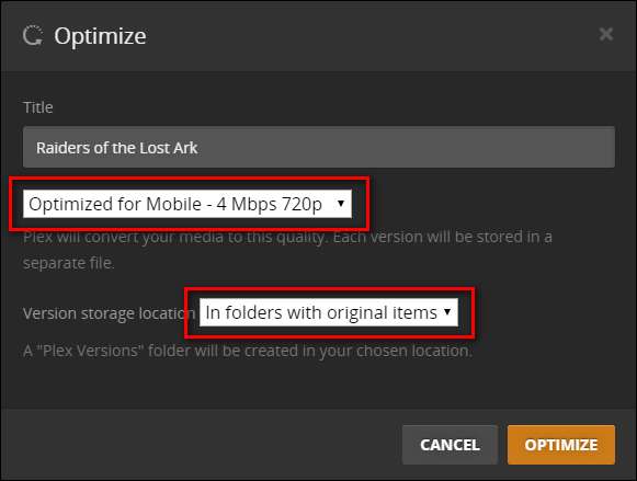 Выбор одного фильма для оптимизации - это здорово, если вы вручную выбираете фильм, который хотите посмотреть вдали от дома, но с практической точки зрения (особенно если у вас несколько пользователей на вашем Plex Media Server), оптимизация вручную утомительна.