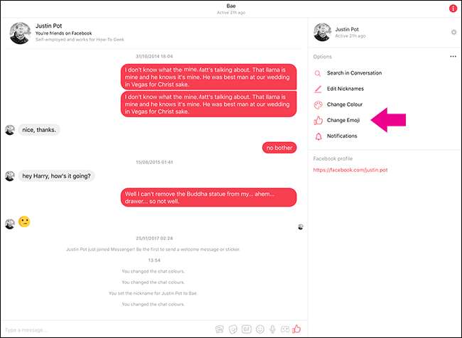 Чтобы изменить лайк-эмодзи, вернитесь в «Параметры» и выберите «Открыть в Messenger».