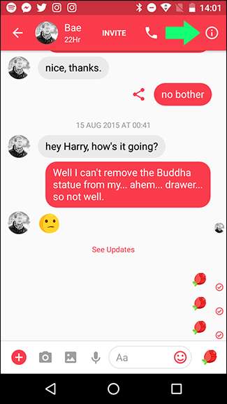 Откройте чат, который хотите настроить, и коснитесь имени человека вверху на iOS или значка I на Android.