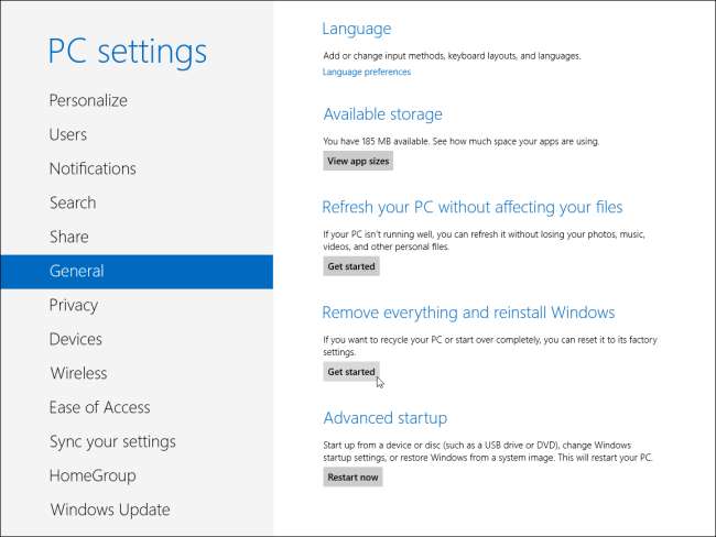 СВЯЗАННЫЕ С: Все, что вам нужно знать о «Сбросить этот компьютер» в Windows 8 и 10