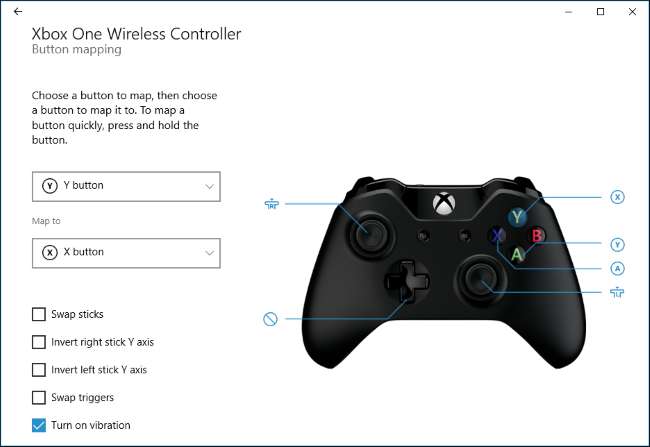 Windows 10 теперь позволяет переназначать кнопки контроллера Xbox One, как вы можете переназначить кнопки на консоли Xbox One . Эта функция является частью приложения Xbox Accessories, которое не установлено по умолчанию.