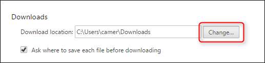 Здесь вы найдете все доступные параметры для настройки параметров загрузки. Если вы хотите изменить место загрузки по умолчанию, просто нажмите кнопку «Изменить» и выберите новое место.