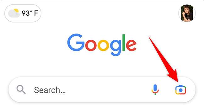 Запустите приложение Google на своем телефоне. В приложении, прямо рядом с полевым полем «Поиск», нажмите на опцию Google Lens (значок камеры).