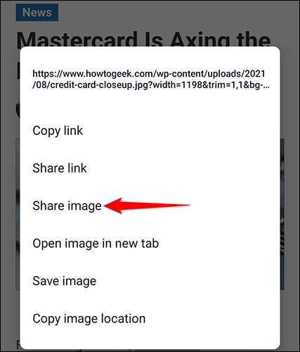 Нажмите и удерживайте на изображение, и из меню, который открывается, выберите «Поделиться изображением».