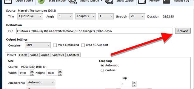 После того, как вы выбрали заголовок, нажмите «Обзор» в разделе «Место назначения», чтобы выбрать, куда вы хотите поместить преобразованные файлы.