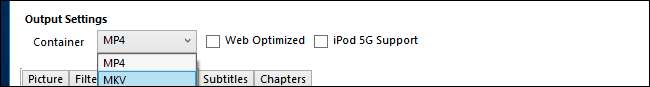 Наконец, в разделе «Контейнер» вы можете выбрать MP4 или MKV. MKV предлагает больше функций и может содержать видео немного более высокого качества, но MP4 совместим с большим количеством устройств, особенно с мобильными устройствами, такими как iPhone. Отметьте устройство, на котором вы хотите воспроизвести файл - если оно поддерживает MKV, используйте MKV, если нет, используйте MP4.