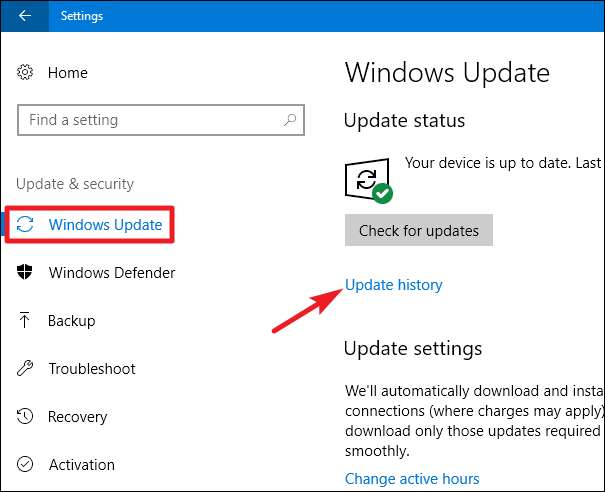 На экране «Обновление и безопасность» перейдите на вкладку «Центр обновления Windows» и щелкните ссылку «Журнал обновлений».
