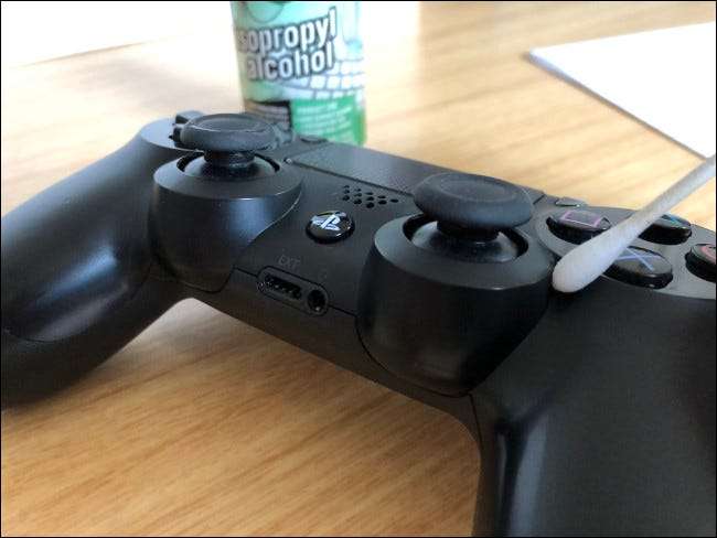 Вы также можете нанести медицинский спирт непосредственно с помощью ватной палочки, прежде чем чистить шов зубочисткой. Фактически, вы можете сделать это для любой из тонких граней на контроллере, в том числе вокруг кнопки сенсорной панели на DualShock 4, если вы ее используете.