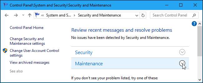Чтобы управлять этой функцией, перейдите в Панель управления> Система и безопасность> Безопасность и обслуживание. Вы также можете открыть меню «Пуск», выполнить поиск по запросу «Обслуживание» и щелкнуть ярлык «Безопасность и обслуживание», чтобы перейти непосредственно к этому экрану.