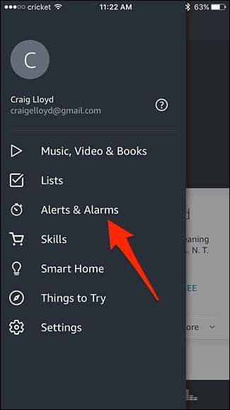 Вы можете делать больше с таймерами, но вам нужно открыть приложение Alexa на своем телефоне. Чтобы увидеть свои будильники и таймеры, начните с нажатия значка меню в правом верхнем углу экрана.
