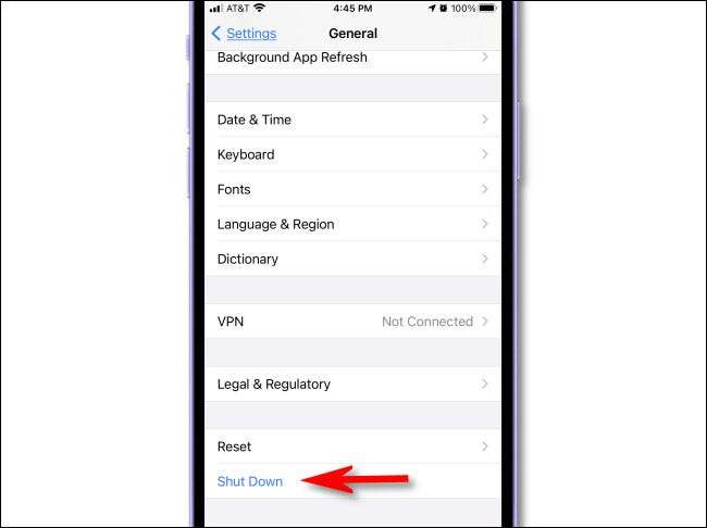 В «Генерал», проведите вниз до самого нижнего списка и нажмите «Выключить».