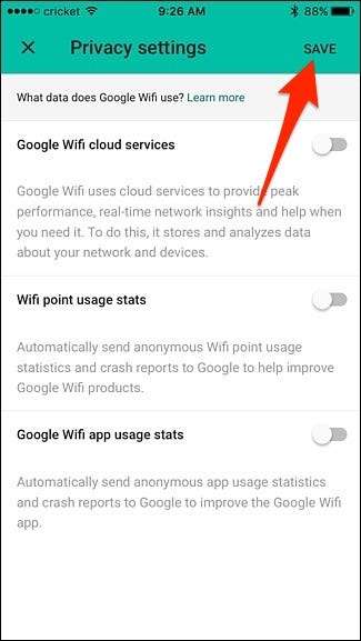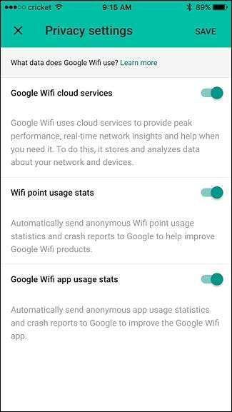 Имейте в виду, что отключение «Google WiFi Cloud Services» отключит некоторые функции, в том числе возможность видеть, сколько пропускной способности и данных использовала ваша сеть с течением времени.