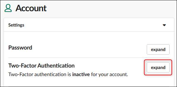 Здесь вы можете выбрать настройки своей учетной записи, изменить настройки уведомлений и изменить свой профиль. Чтобы настроить 2FA, нажмите кнопку «развернуть» рядом с параметром «Двухфакторная аутентификация».