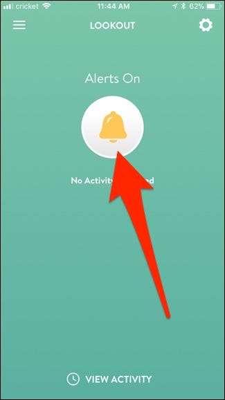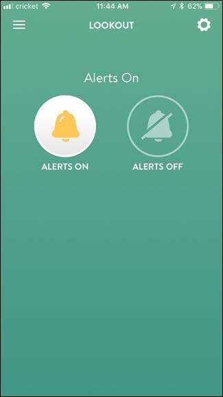 Экран управления Lookout довольно прост. Оповещения будут включены по умолчанию, но вы можете нажать на большую круглую кнопку колокольчика, чтобы выключить их в любое время (и нажать на нее снова, чтобы включить их снова).
