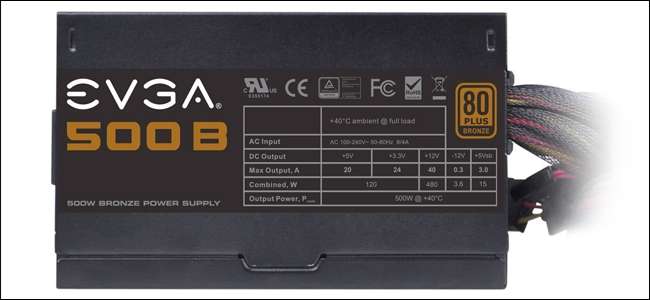 Основываясь на этих общих цифрах, мы можем оценить, что настольный компьютер How-To Geek не будет потреблять более 350 Вт при полной нагрузке. И поскольку спецификации видеокарт рекомендуют блок питания мощностью не менее 400 Вт, именно с этого и начнем. Предел погрешности - это удобно, не говоря уже о том факте, что наличие небольшой дополнительной мощности дает вам место для добавления дополнительных компонентов в будущем, например дополнительных накопителей или охлаждающих вентиляторов.