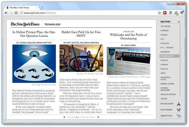 Если вы обратите внимание, то заметите, что версия NY Times для Chrome - это не что иное, как URL-адрес, что означает, что вы можете легко перейти к ввв.нититесь.ком/хроме/ в любом браузере, поддерживающем HTML5, и получите аналогичный опыт. Так обстоит дело с большинством приложений в Интернет-магазине Chrome, поскольку они основаны только на обычных веб-технологиях, таких как HTML5 и Flash.