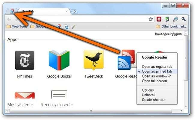 Вы можете вывести свои приложения на новый уровень, настроив способ их открытия: есть закрепленные вкладки, отдельные окна и даже полноэкранный режим. Давайте посмотрим на первую, закрепленные вкладки. Просто перейдите к любому из установленных приложений, щелкните его правой кнопкой мыши и выберите в меню «Открыть как закрепленную вкладку». После того, как вы нажмете, чтобы запустить приложение, оно запустится на закрепленной вкладке, которая снова откроется в браузере, как только вы его закроете.