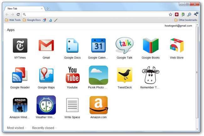 Всего через несколько секунд вы увидите новый сверкающий значок на странице быстрого доступа, где находятся все эти приложения. Вы можете вернуться к списку приложений в любой момент, открыв новую вкладку и убедившись, что раздел «Приложения» развернут.