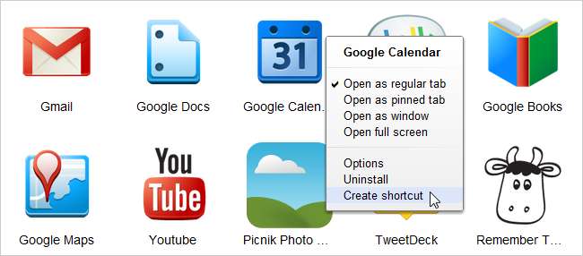 Если вы щелкните правой кнопкой мыши многие приложения, вы можете выбрать «Параметры», чтобы настроить работу этого приложения - в некоторых приложениях есть страницы параметров в стиле Chrome, другие просто перенаправляют вас на обычную страницу настроек для веб-сайта.
