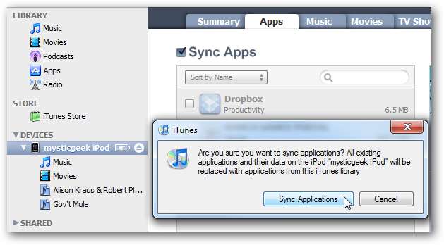 Если вы еще не сделали этого, перейдите на вкладку «Приложения» и установите флажок «Синхронизировать приложения».