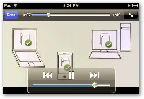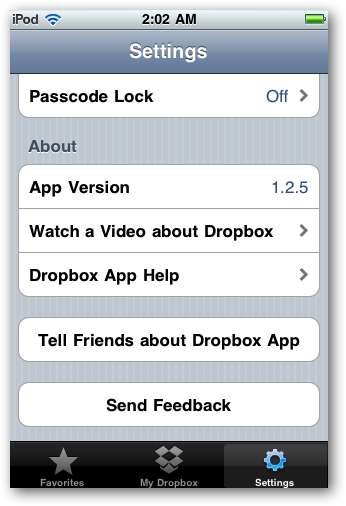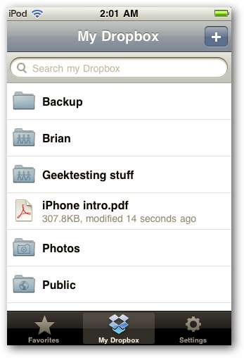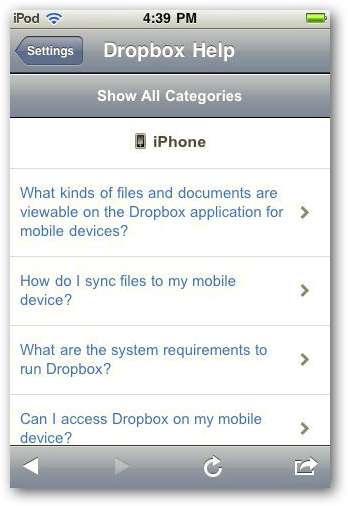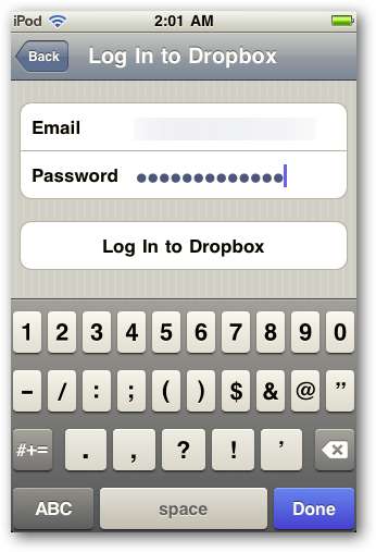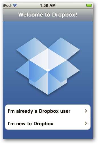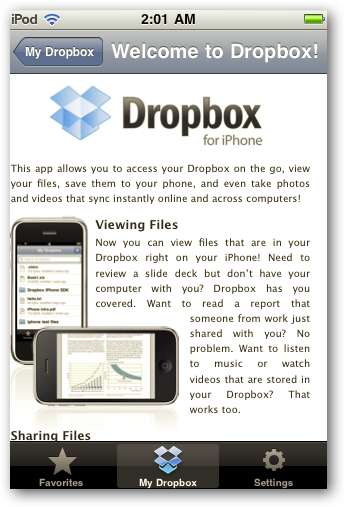 При входе в систему вы можете ознакомиться с обзором «Добро пожаловать в Dropbox» для iPhone / Touch.