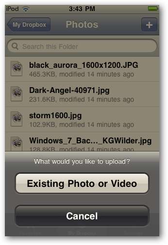 Добавление файлов с iPod Touch или iPhone в Dropbox