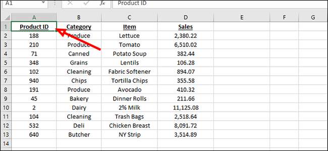 Во-первых, мы отметим верхний ряд, чтобы мы могли лучше организовать наши данные, как только мы применим сводечные материалы на более поздний шаг.