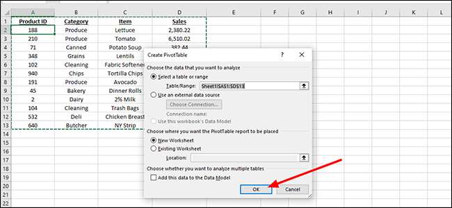 Когда появится диалоговое окно, нажмите «ОК». Вы можете изменить настройки в диалоге «Создать сводный диалог», но это обычно ненужно.