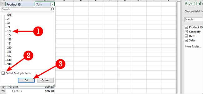 Этот выпадающий список - это сортирующее меню, которое позволяет просматривать каждый идентификатор продукта самостоятельно или в сочетании с любым другим идентификатором продукта. Чтобы выбрать один продукт, просто нажмите на него, а затем нажмите «ОК», или установите флажок «Выбрать несколько элементов», чтобы выбрать более одного идентификатора продукта.