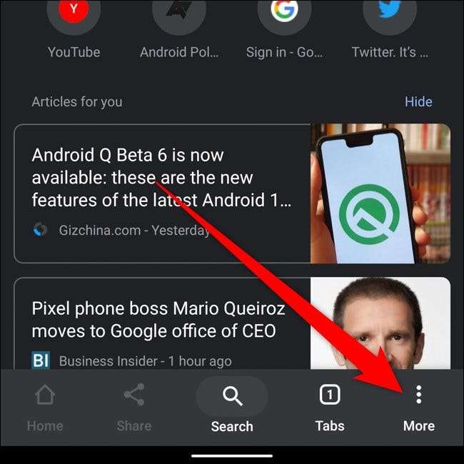 Затем нажмите на три вертикальные точки. В зависимости от вашей версии Chrome они находятся в правом верхнем или правом нижнем углу экрана.