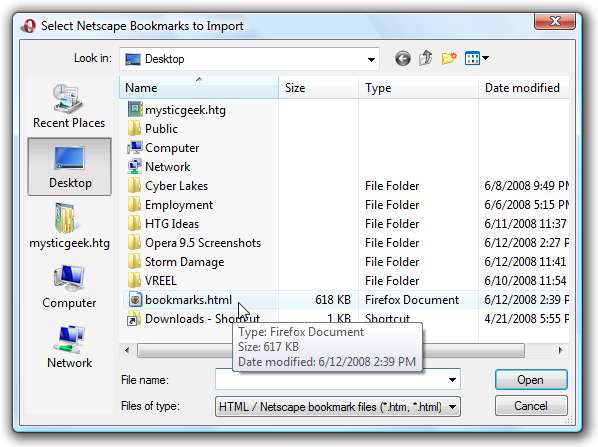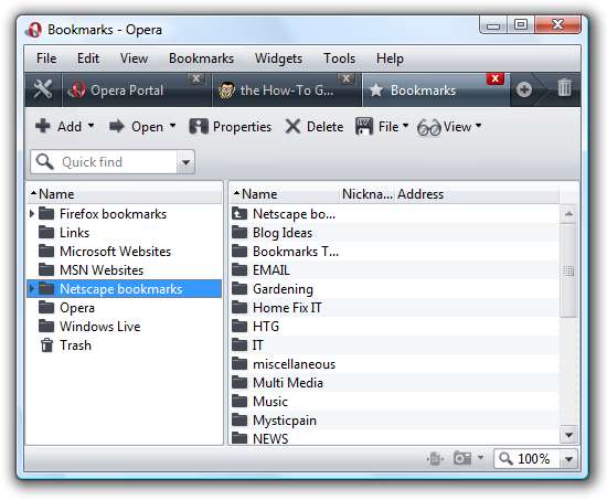 Теперь, когда я открыл Opera и перешел на вкладку закладок, все мои закладки Firefox были помещены в папку Netscape.
