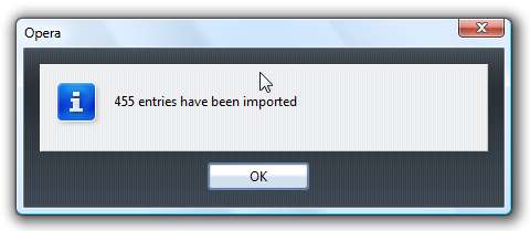 Следующий экран - это подтверждение, указывающее на импортированные записи. Щелкните ОК.