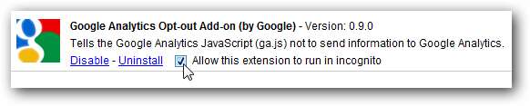 По умолчанию расширения не запускаются, когда вы используете Google Chrome в режиме инкогнито. Скорее всего, вы захотите, чтобы Google Analytics не отслеживал и ваш частный просмотр, поэтому откройте страницу расширений в Chrome и проверьте Разрешить этому расширению работать в режиме инкогнито коробка.