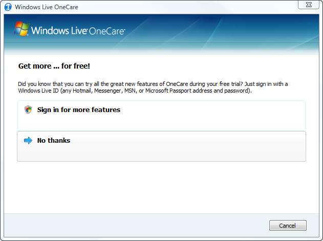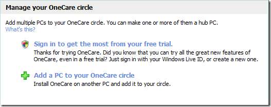 Вы можете управлять несколькими ПК на базе Windows (до трех) с кругом OneCare. Кроме того, вход с помощью идентификатора Windows Live ID позволяет получить больше от пробной версии OneCare.